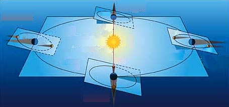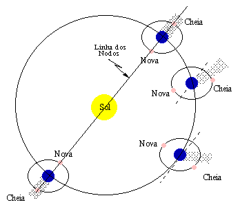 A órbita da Terra em torno do Sol, e a órbita da lua em torno da Terra, não estão no mesmo plano, ou ocorreria um eclipse da Lua a cada ( Lua Cheia ), e um eclipse do Sol a cada ( Lua Nova ) .