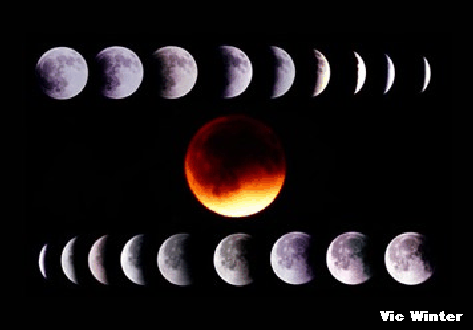 Um eclipse total da Lua acontece quando a Lua fica inteiramente imersa na umbra da Terra; se somente parte dela passa pela umbra, e resto passa pela penumbra, o eclipse é parcial. Se a Lua passa somente na penumbra, o eclipse é penumbral. Um eclipse total é sempre acompanhado das fases penumbral e parcial. Um eclipse penumbral é difícil de ver diretamente com o olho, pois o brilho da Lua permance quase o mesmo. Durante a fase total, a Lua aparece com uma luminosidade tênue e avermelhada. Isso acontece porque parte da luz solar é refractada na atmosfera da Terra e atinge a Lua. Porém essa luz está quase totalmente desprovida dos raios azuis, que sofreram forte espalhamento e absorção na espessa camada atmosférica atravessada.